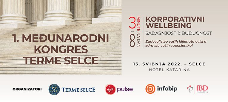 1. Međunarodni kongres Terme Selce održati će se 13.5.2022. u Hotelu Katarina u Selcu, na temu zdravlja djelatnika u kompanijama pod naslovom„Korporativni wellbeing – sadašnjost i budućnost“.