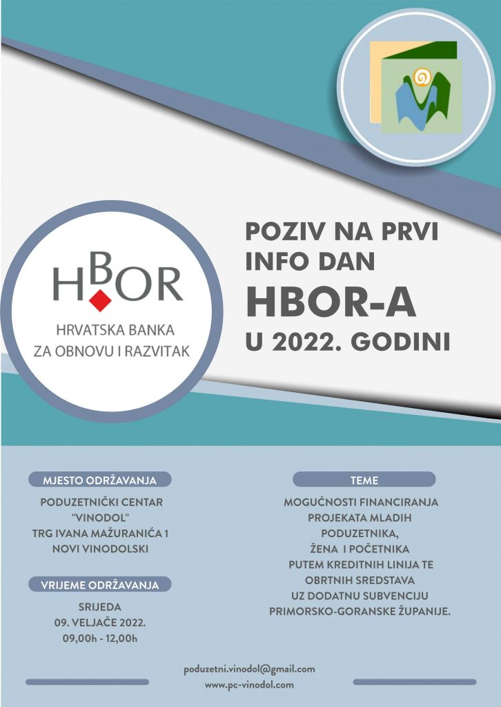 Poduzetnički centar “Vinodol”  u suradnji sa Hrvatskom bankom za obnovu i razvitak (HBOR), Područnim uredom HBOR-a za Primorje i Gorski kotar u srijedu 09. veljače 2022. godine organizira prvo ovogodišnje besplatno individualno savjetovanje poduzetnika i privatnih iznajmljivača s područja Crikvenice, Novog Vinodolskog i Vinodolske općine.