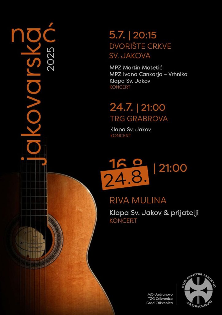 Naši će Jakovari još jednom pokazati kako su dobri domaćini. Na rivi Mulina uživajte u nastupu domaćina, Klape „Sveti Jakov” i prijatelja