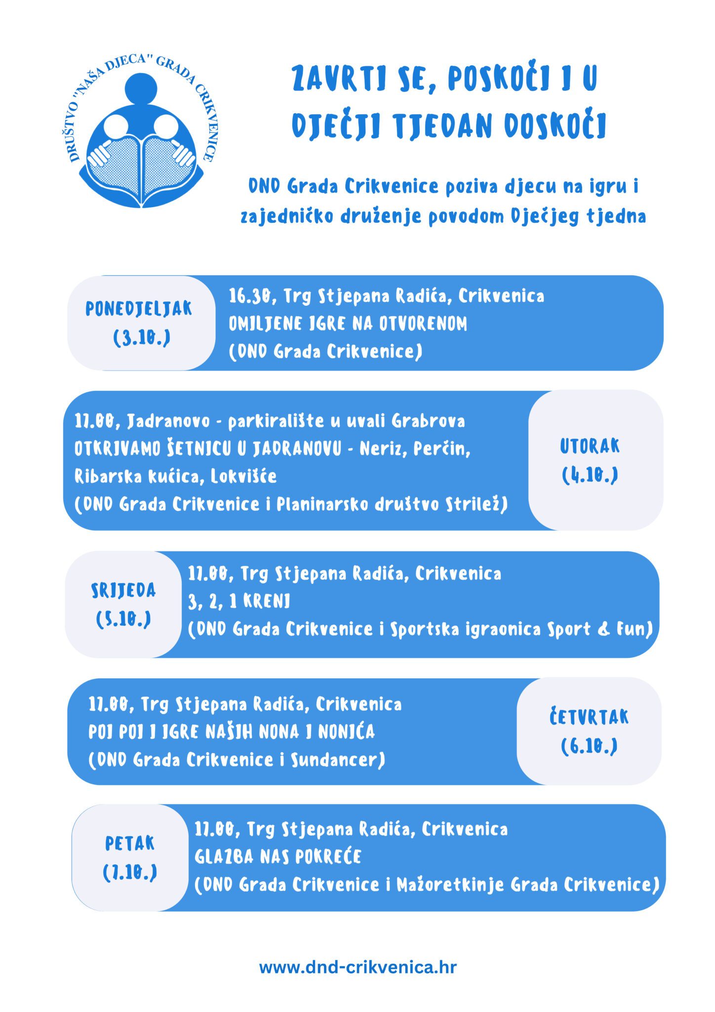 Društvo Naša djeca Grada Crikvenice na maštovit način obilježava Dječji tjedan od 3. do 7. listopada.